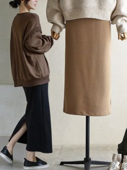 【C55708】韓國BLG 後開衩直筒棉裙-素面窄裙全腰鬆緊寬鬆多尺寸長裙-棕色