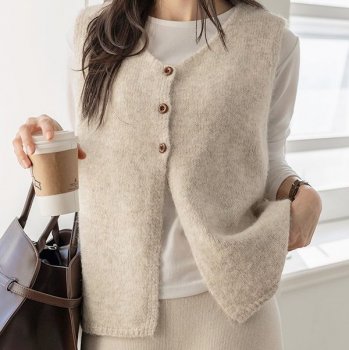 【C55521】韓國PUR 開衩混羊毛背心-素面V領開襟排釦針織無袖外套