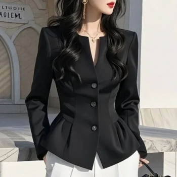 【C60908】日本S小腰精氣質收腰別緻花邊長袖襯衫-黑色
